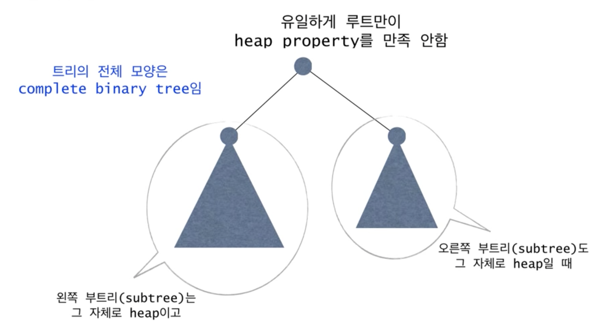 n = n-1) 즉, 가장 마지막 값은 힙의 일부가 아닌 것으로 간주한다. - 루트 노드에 대해서