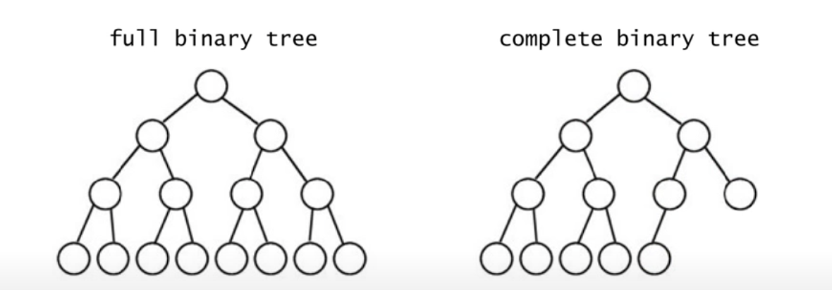 - Complete Binary Tree : 마지막 레벨을 제외하면 완전히 꽉 차있음, 마지막 레벨에는 가장 오른쪽부터 연속된 몇 개의 노드가 비어있을 수 있음