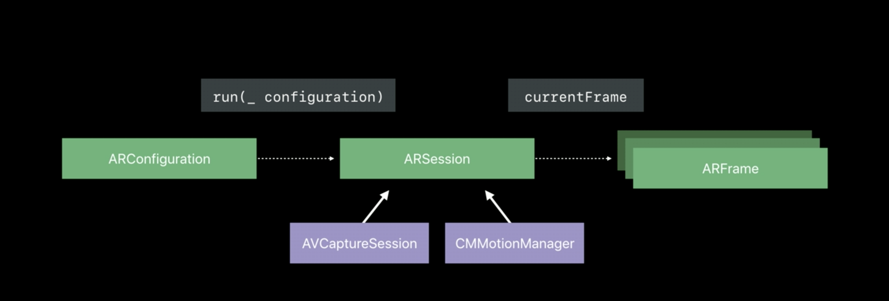 - ARSession은 카메라 이미지와 센서 데이터를 받기 위해 AVCaptureSession, CMMotionManager 구성함 (안에서 알아서 하는 것)